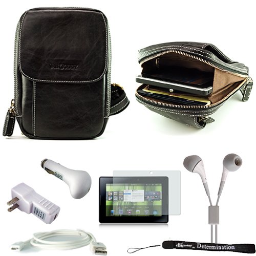 Buy Now! Protective and Durable Real Genuine Leather Sling Bag with Removable and Adjustable Shoulder Strap (Unisex) For Blackberry Playbook Table Notebook Organizer Device + a White Home Usb Charger + a White Car Usb Charger + a White USB data cable + White Clear High Quality HD Noise Filter Ear buds Earphones Headphones ( 3.5mm Jack ) + a Anti-Glare Screen Protector + Includes 4-inch ebigvalue Determination Hand Strap